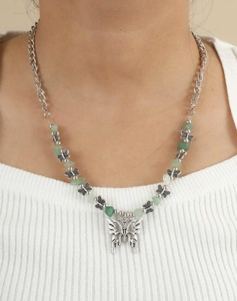 Pre Ordered Gem Stones Necklace With Butterfly Charm Women S Fashion Jewelry Organisers Necklaces On Carousell